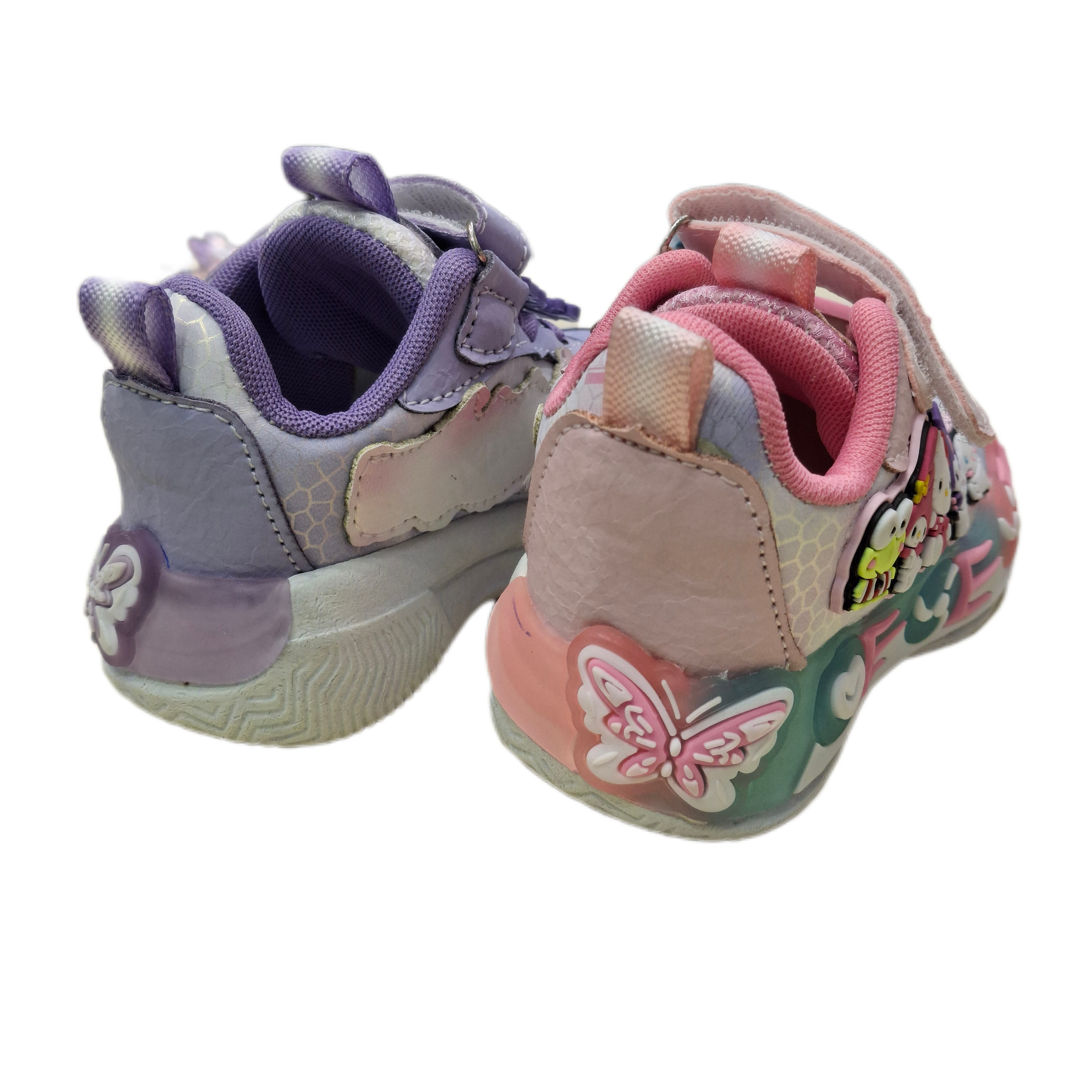 کفشی شیک و راحت برای دختران پرانرژی شما! این **کفش بچه گانه** با ترکیب رنگ صورتی و بنفش جذاب، طرحهای دوستداشتنی Hello Kitty، My Melody و Cinnamoroll، و بندهای چسبی کاربردی، انتخابی ایدهآل برای استفاده روزمره، بازی و فعالیتهای شاد کودکان است. راحتی، دوام و زیبایی را به قدمهای کوچک دلبندتان هدیه دهید.